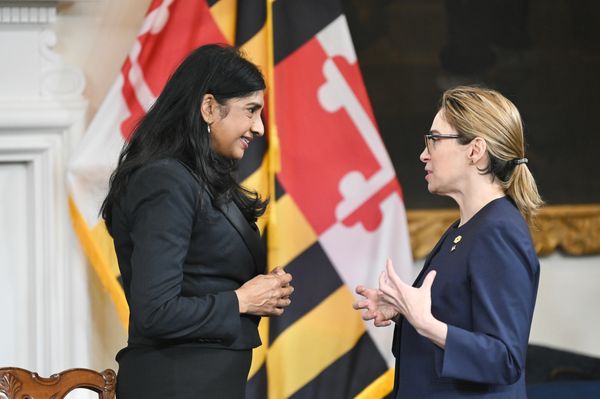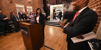 Lt. Governor Aruna Miller discussing policy with NASA Goddard Space Flight Center Director Mackenzie Lystrup at the Policy Roundtable